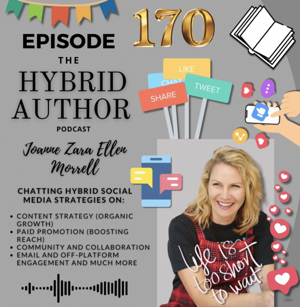 We’ve hit 170 episodes of The HYBRID Author Podcast, and to celebrate, join host and author of young adult fiction, women’s fiction and short non-fiction for authors Joanne Zara Ellen Morrell chatting HYBRID social media strategies via: content stratregy (organic growth) paid promotion (boosting reach) community and collaboration email and off-platform engagement and much more.